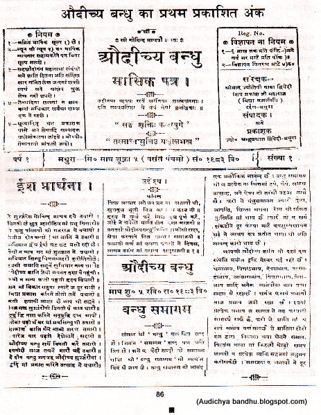 मूलत: प्रकाशित पत्रिका"औदीच्य बंधू" प्रतिमाह घर पर पाने के लिए